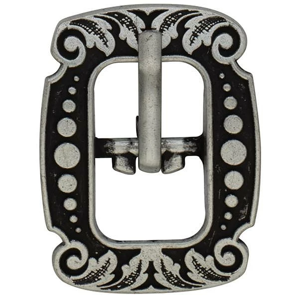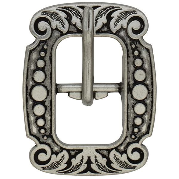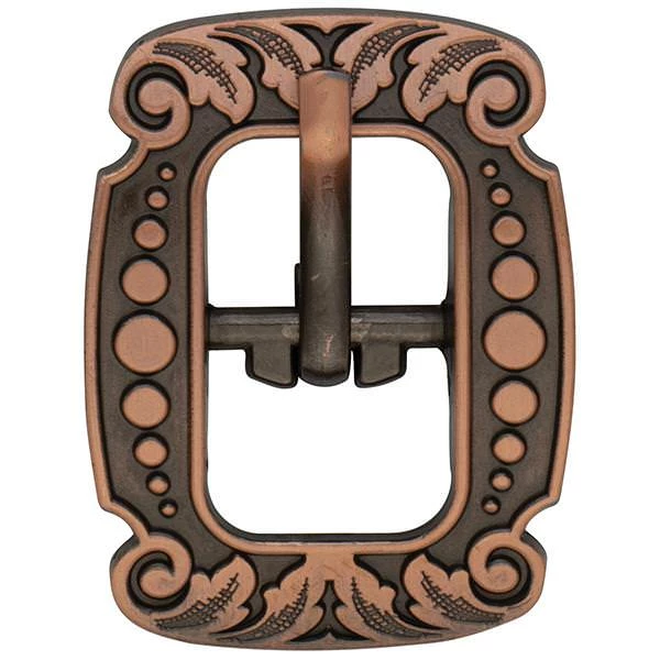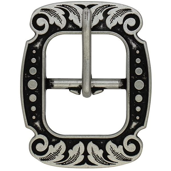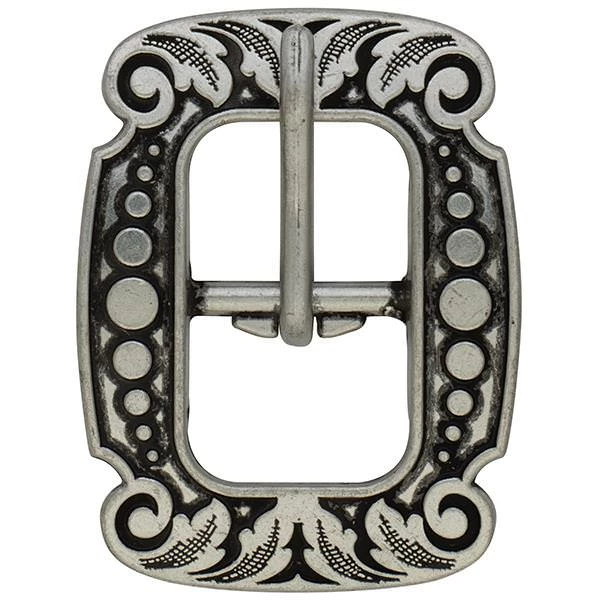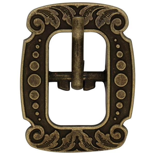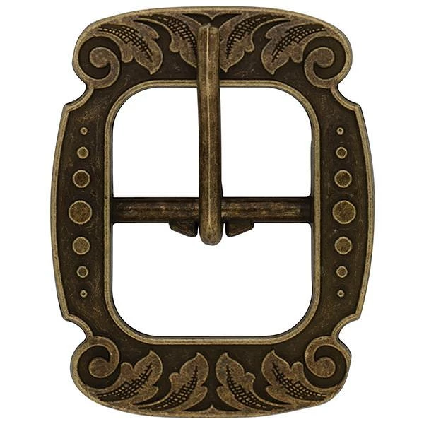- Vintage-style center bar buckle is engraved with a versatile floral design that looks great on a wide range of leather projects