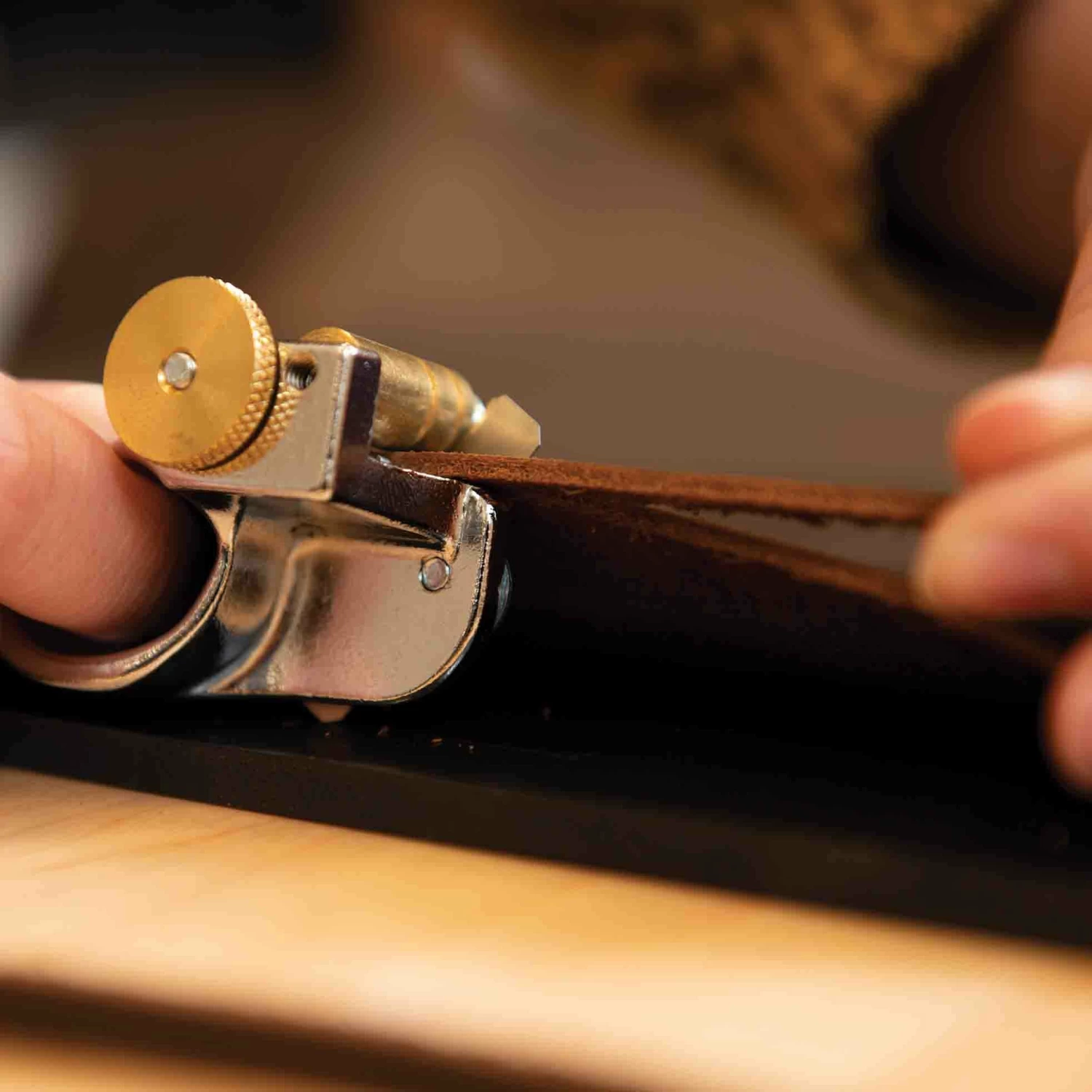 This is an indispensable tool for all tack and leather shops. This legendary Australian strander is constructed from chrome plated cast steel with solid brass parts and the deluxe tool adjusts to cut lace, thongs and strips up to 1/2″ wide.