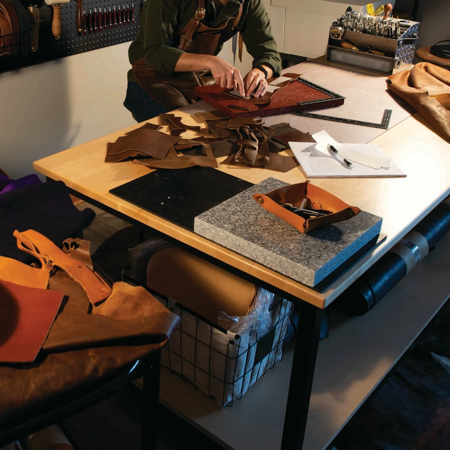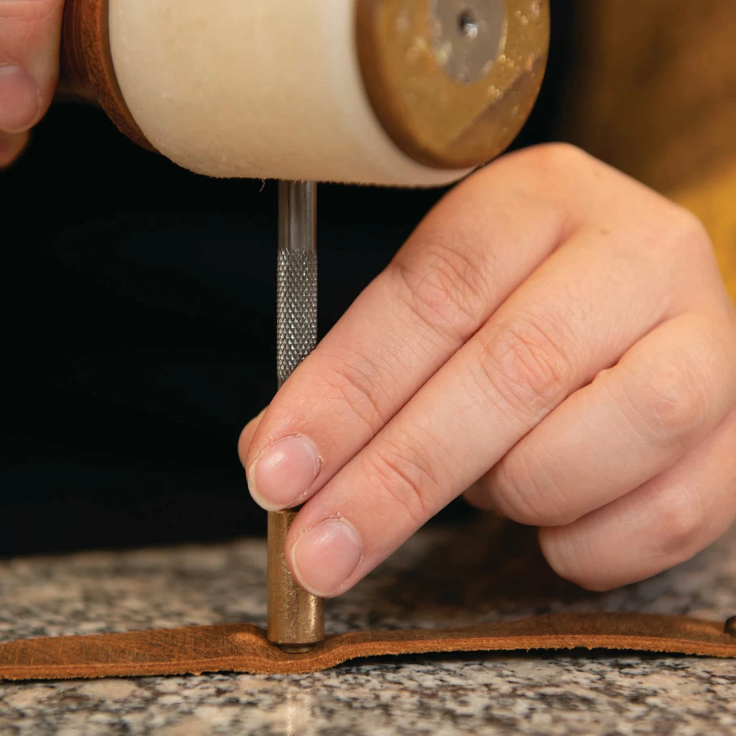Polished marble tooling slab is a leather crafting workhorse that instantly upgrades your work area. From better, more detailed impressions when tooling to setting rivets and more, this marble slab for leather work is an investment in your leather journey. For professional results, you need a quality work surface for leathercrafting tasks like tooling and carving and this slab delivers at a great price. Add this stone slab under a poundo board or cutting board for added versatility in your work space.